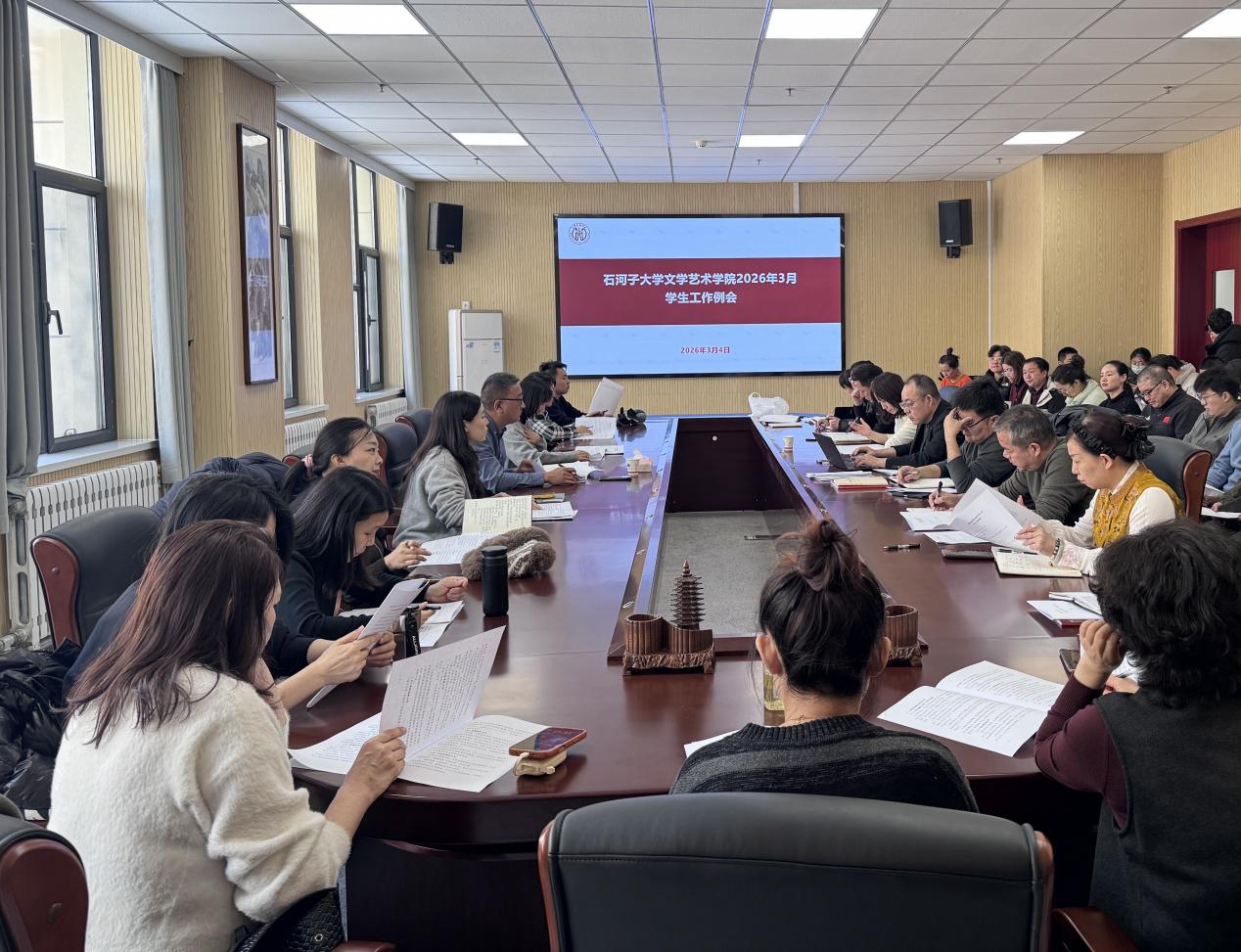 3月4日,色情网站 在文212会议室召开新学期学生工作例会,围绕“新学期、新部署、新作为”主题,系统谋划、全面启动本年度学生工作。色情网站 党委书记宋育果出席会议,各系主管学生工作领导、全体辅导员及本研班主任参加会议。