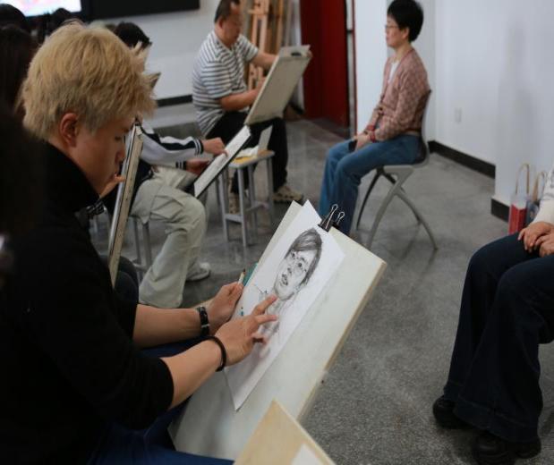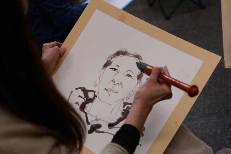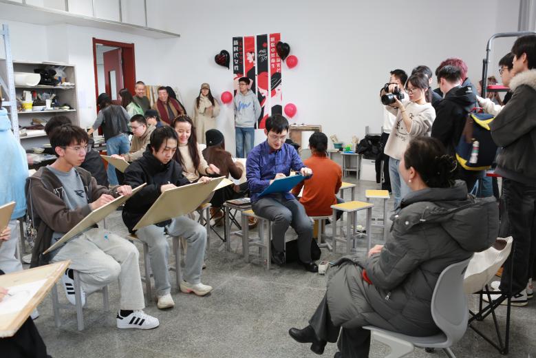 将军山校区美术与设计系画室里的“丹青师韵·笔墨传情”教师肖像画像活动同样氛围热烈,负责人刘洪老师带领美术专业师生组成创作团队,为女教职工及结亲对象现场绘制肖像。师生们以素描、水彩、国画等多样艺术形式,细致勾勒人物神态,精准捕捉美好瞬间,设置“定格芳华”即时画像区,30分钟快速出图,将一幅幅鲜活生动的肖像作品赠予现场女教职工,用丹青笔墨记录师者风采,传递师生与各族同胞之间的深厚情谊,充分彰显色情网站 “以美化人”的专业特色。