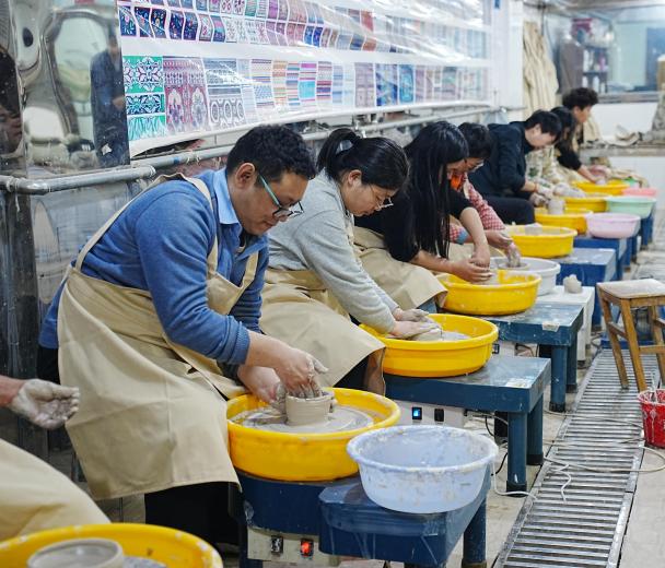 东区陶艺工作室的“指尖塑美,致敬女神”陶艺拉坯现场,负责人杨超老师全程指导,女教职工与结亲对象共同协作,在揉泥、拉坯、塑形的过程中感受手工创作的乐趣。大家放慢节奏、专注体验,将对生活的热爱与节日的喜悦融入指尖,亲手打造专属陶艺纪念物,在动手实践中释放压力、增进情谊,让节日充满温度与记忆点。