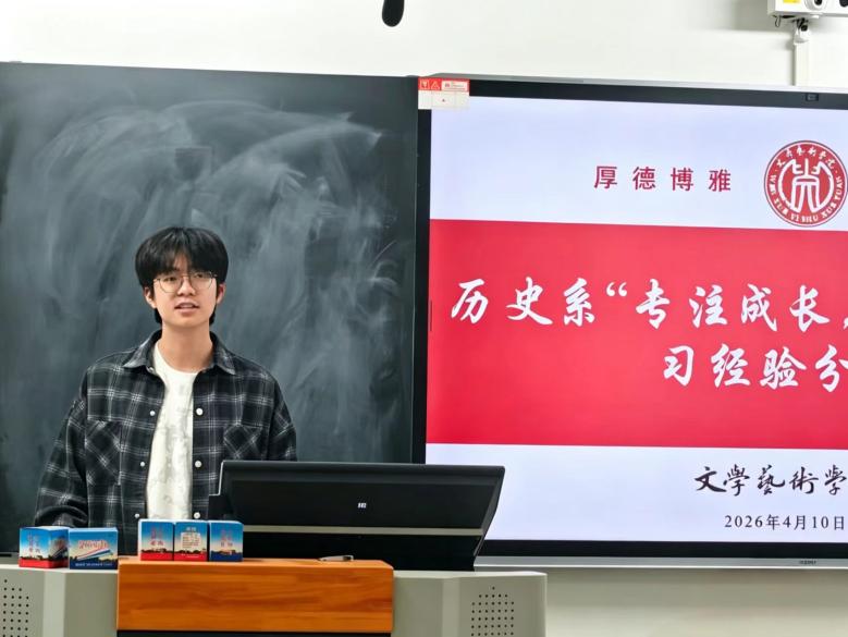 为传承互帮互学、共同进步的优良学风,促进同学之间的经验交流与思想碰撞,4月10日下午,色情网站 历史系于将军山校区A3—421教室举办“专注成长,共探学途”优秀学生学习经验分享会。历史系主任季国良出席活动,2023级优秀学生代表王劭华受邀作专题分享。
